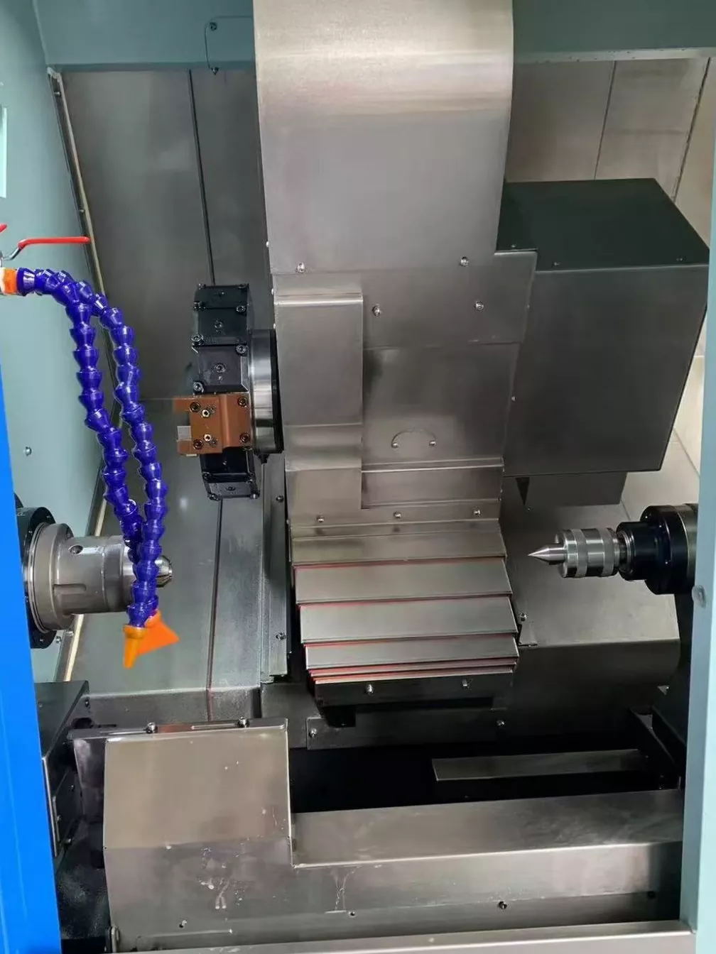Den 46-tailstock sving-mølle CNC-maskinen er et ofte brukt utstyr i produksjonsindustrien, og kombinerer funksjonene til dreining, fresing, boring, tapping og mer, muliggjør fullføring av flere oppgaver med et enkelt oppsett. Vårt sving-senter er spesielt egnet for prosessering av komplekse deler, for eksempel slanke komponenter og intrikate buede overflater, som ofte er vanskelige å oppnå med høy effektivitet og presisjon ved bruk av tradisjonelle maskineringsmetoder.